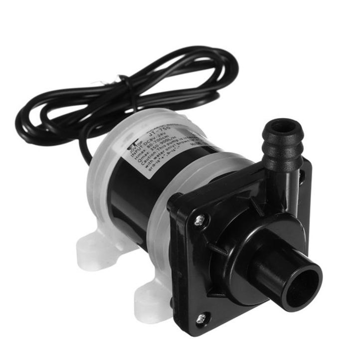A compact 12V DC brushless submersible water pump designed for continuous operation, ideal for water circulation, cooling, and DIY projects.